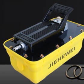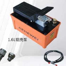Bơm khí nén thủy lực – Hay còn gọi các tên khác như là bơm thủy lực khí nén, bơm bằng chân, bơm thủy lực khí nén đạp chân model BQ-DA5, có dung tích thùng dầu 1.6 lít, áp suất hoạt động max 700 bar chuyên dùng cho kích thủy lực 1 chiều hay là các dụng cụ thủy lực cao áp 1 chiều (Single Acting).